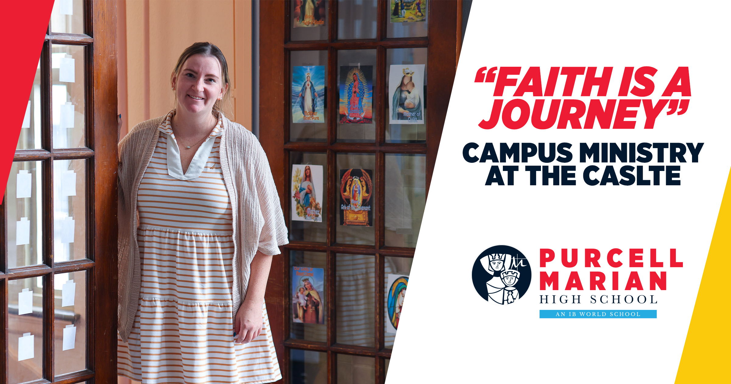 “I miss the classroom, but I also feel that what I’m doing in campus ministry is what’s needed for this school.” What Jones has begun to build with students is admirable: planning all-school Masses with student-led participation, hosting a morning Muffins & Ministry event, supporting colleagues in welcoming students to pray the rosary together, planning retreats for each class level, building in student-led prayers in the morning and afternoon announcements, and community-wide faith events that connect spiritual life with the daily life of Purcell Marian.